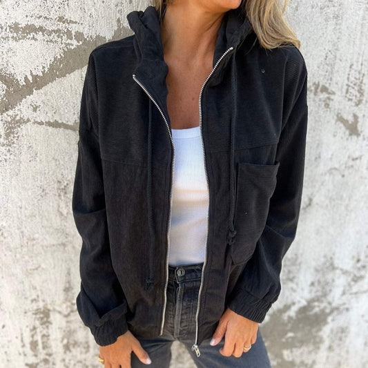 Veste Dressing Chill à Capuche pour Femme en Velours Côtelé - Look Chic et Décontracté